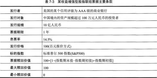 【分析解答题】某款收益增强型的股指联结票据的主要条款如表7-3所示。请据此条款回答以下五题.